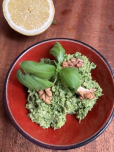 — Nuts (I used walnuts, but I’ve seen recommendations for sunflower seeds, pine nuts, almonds…any nut or seed is going to give it a richness)