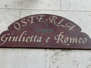 The Husband and I made our trip to Verona for two reasons: to celebrate our Magnificently Large and Significant Anniversary, and to do research for my upcoming historical fiction novel, A DAUGHTER OF FAIR VERONA starring Rosie Montague, the eldest daughter of Romeo and Juliet. As Rosie says, “Yes, that Romeo and Juliet. The one that Shakespeare wrote about. No, they didn’t die in the tomb. Rumors of their deaths were greatly exaggerated. In fact, they’re alive and well and the parents of seven kids. I’m the oldest, with the emphasis on ‘old’—a certified spinster at twenty, and happy to stay that way. It’s not easy to keep your taste for romance with parents like mine. Picture it—constant monologues, passionate declarations, fighting, making up, making out . . . it’s exhausting.”